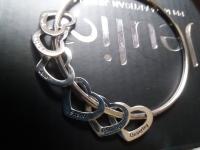 Record your love with this meaningful piece. This sterling silver bracelet with heart shape pendants just right for celebrating love, friendship, and family.With a sleek, simple profile that makes it perfect for wearing on its own or alongside other bangles,this gorgeous piece features a simple silver bangle adorned with open hearts made of sterling silver, each inscribed with the name, nickname, or inspirational word of your choice. However you style it, it truly is one of a kind!